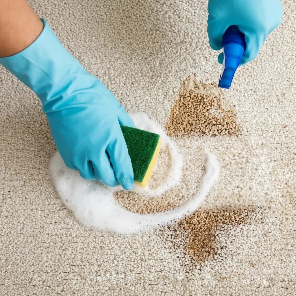 ممکن است پیش از شستشوی کامل موکت، لکههایی روی سطح آن وجود داشته باشد؛ به همین دلیل بهتر است ابتدا لکههای سطحی و محدود را بهصورت موضعی پاک کنید تا در مراحل بعدی شستشو پخش نشوند یا به عمق الیاف نفوذ نکنند. برای لکههایی مانند چربی، میتوان از ترکیب آب ولرم و مقدار کمی مایع ظرفشویی استفاده کرد یا محلولی شامل یکسوم لیوان سرکه سفید، یک لیوان آب و مقدار کمی مایع ظرفشویی تهیه و آن را بهصورت اسپری روی لکه اعمال نمود. سپس با یک دستمال تمیز و با حرکات ضربهای ملایم (بدون کشیدن)، لکه را از سطح موکت پاک کنید.